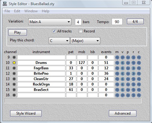 To create a new style from a MIDI file press the "Style Wizard" button.