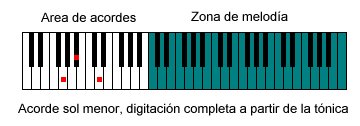 Introduce un acorde con 3 dedos en la parte izquierda de tu controlador MIDI. Empezará a sonar el acompañamiento. Toca la melodía en la zona derecha del teclado. Si no tienes controlador MIDI: utiliza las teclas qwerty y el resto, o usa el ratón para los acordes y variaciones.